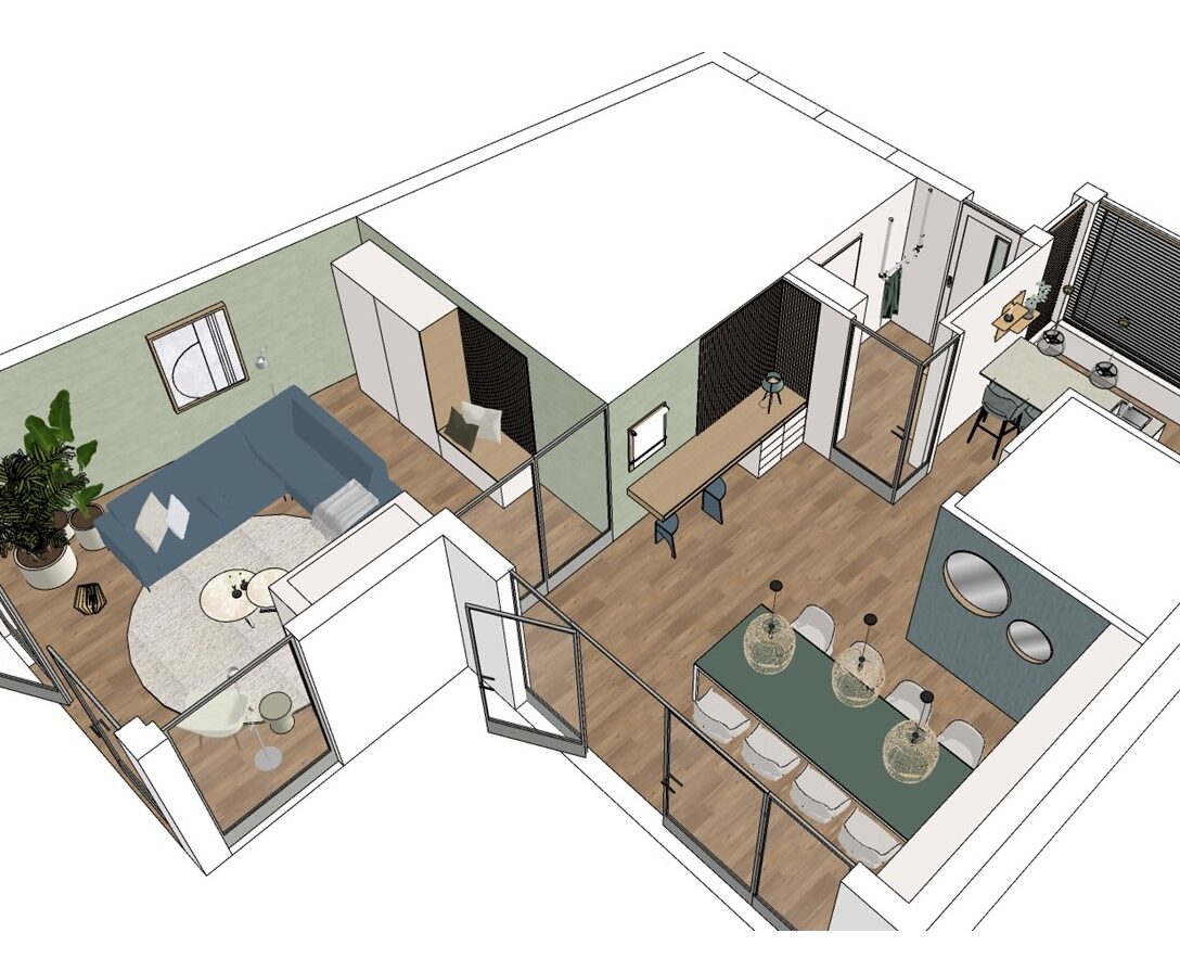 Verhuizen! En nu? Deze opdrachtgevers willen hun nieuwe woning Eigen maken en lieten een ontwerp maken waarin we verschillende mogelijkheden bekeken. Van een gedateerde woning werd een frisse gezinswoning gecreëerd waarin geleefd mag worden. Door middel van maatwerk kasten werden er verschillende hoekjes gemaakt waarin iedereen zijn eigen plekje kan opzoeken.